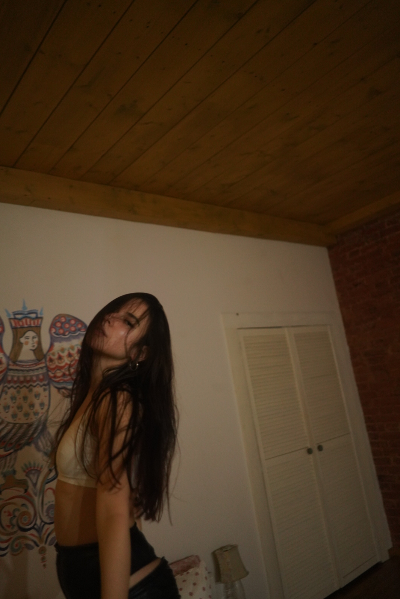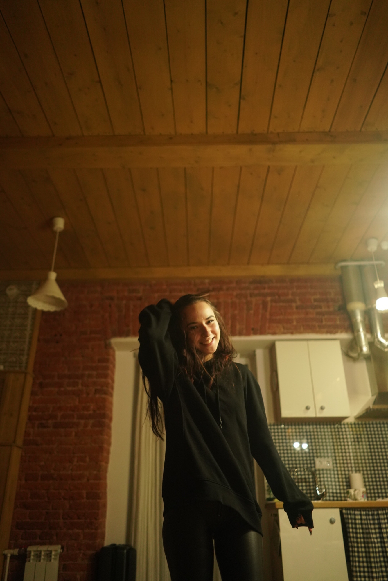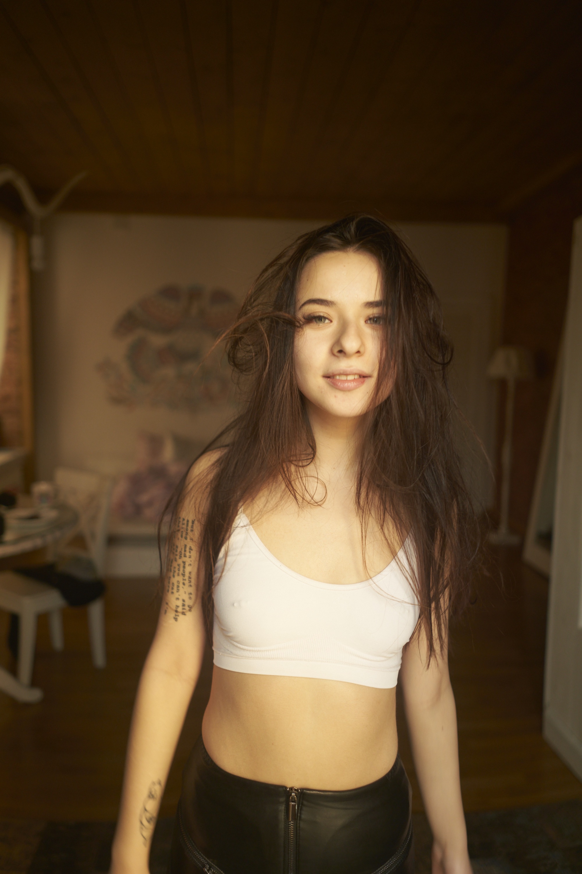 Она приехала. Это была такая милая девушка в пуховике. Она сняла его, я сел на пол и начал делать кадры.