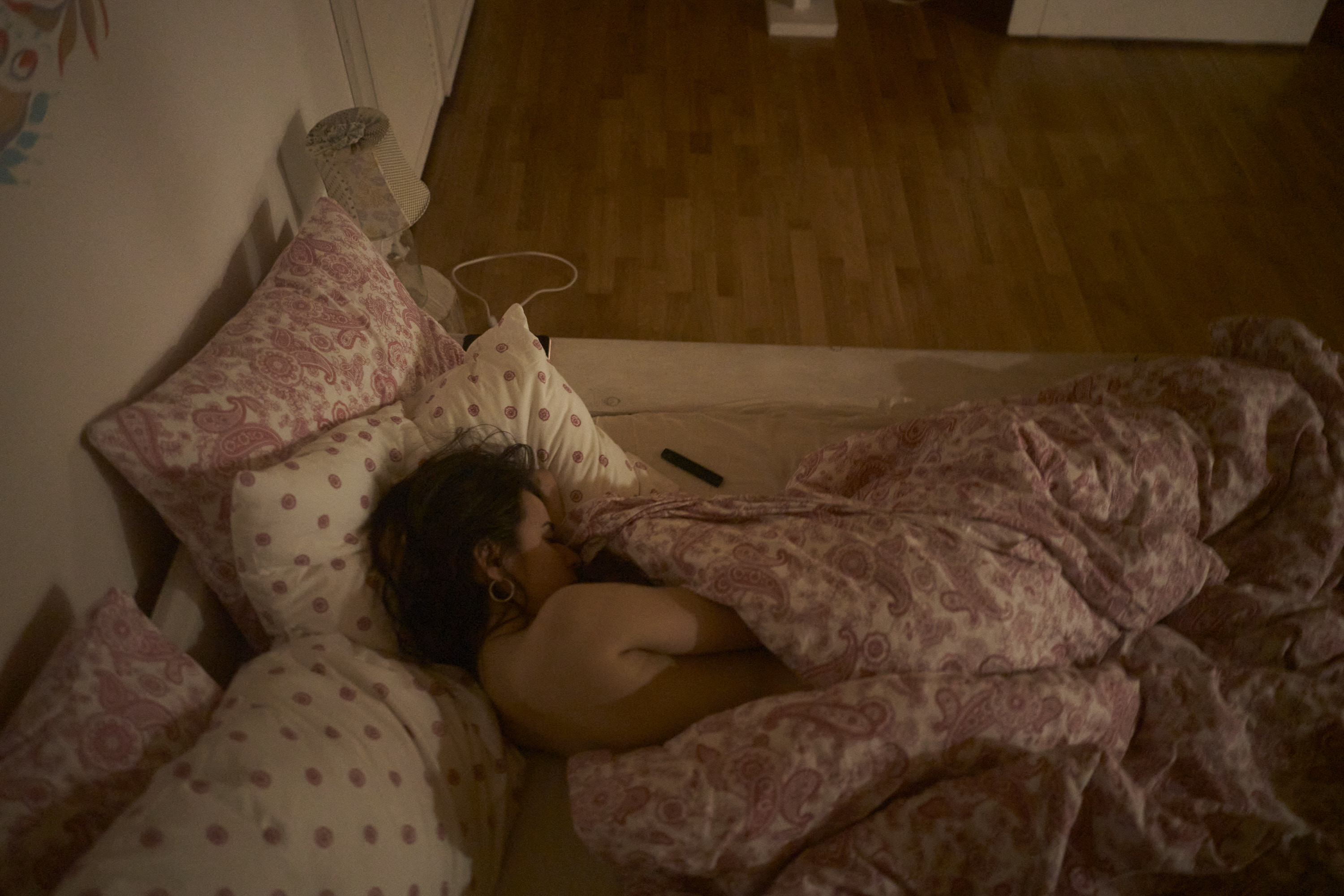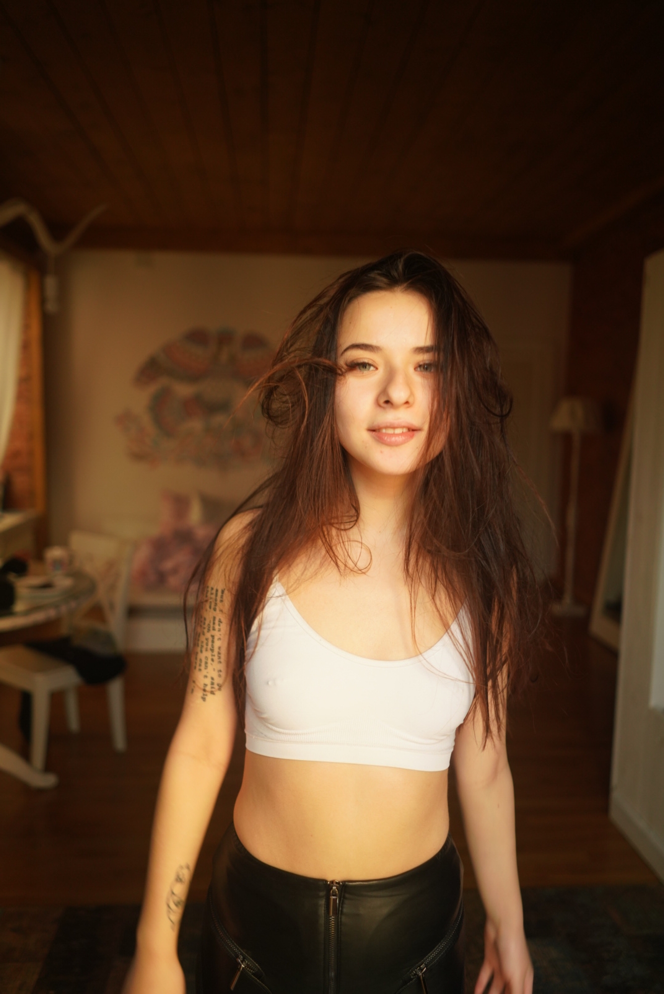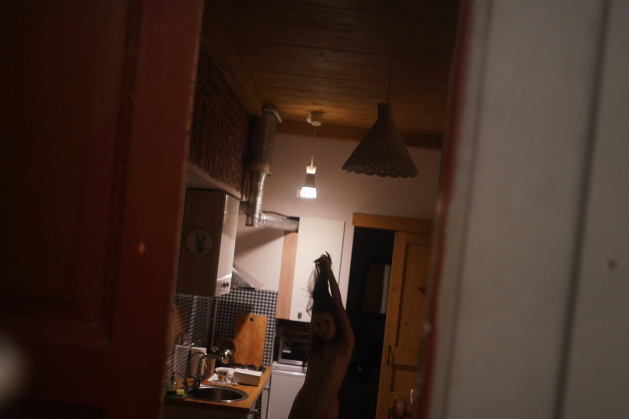 Она приехала. Это была такая милая девушка в пуховике. Она сняла его, я сел на пол и начал делать кадры.
